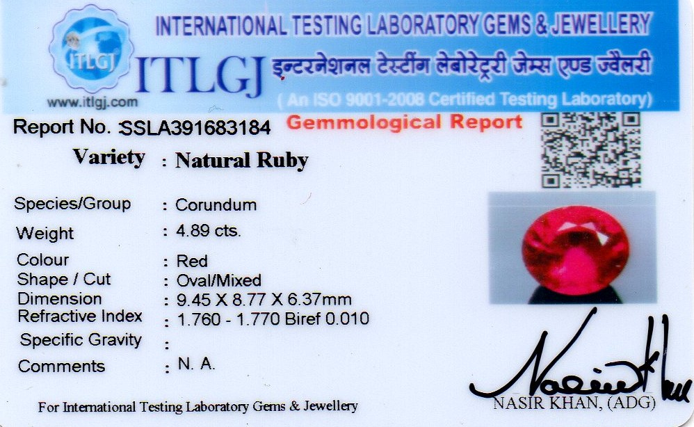 NATURAL RUBY (MANAK) (HEATED & TREATED) 5.94 CTS (4536-334-1200 ...