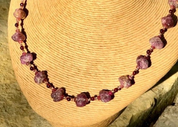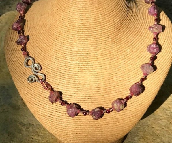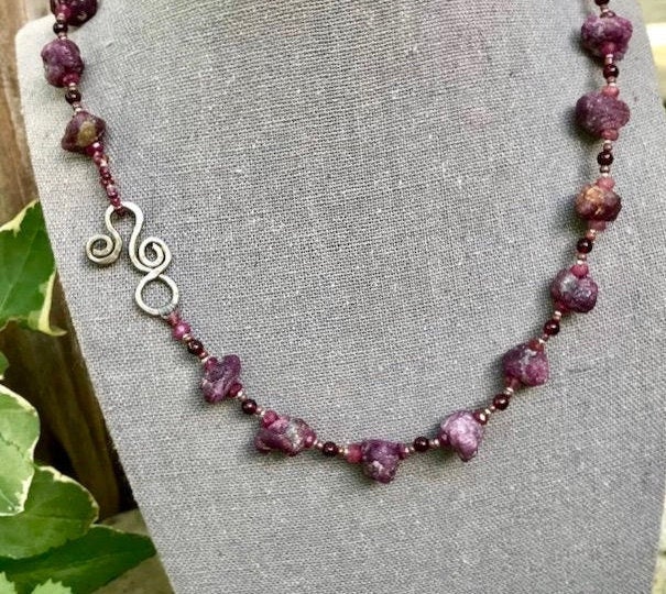 Ruby Nugget Necklace | Raw Ruby Nugget, Pink Tourmaline, and Garnet ...