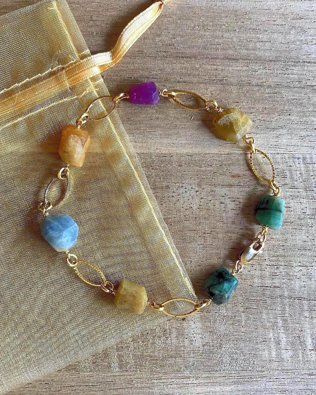 Sapphire, Emerald & Ruby Nugget Statement Bracelet: Unique Boho Jewelry ...