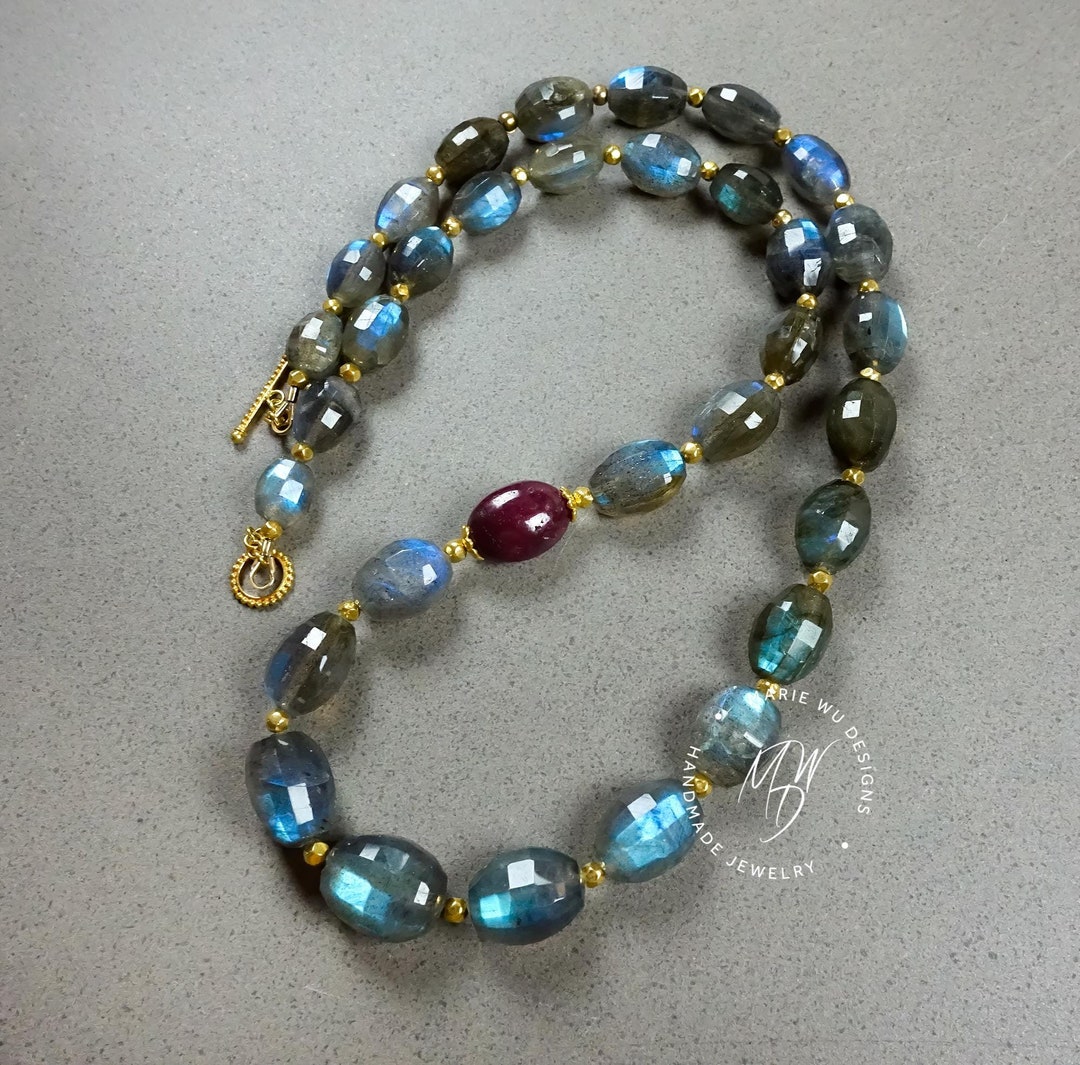 18k Gold Labradorite Ruby Nugget Necklace, One-of-a-kind Statement ...
