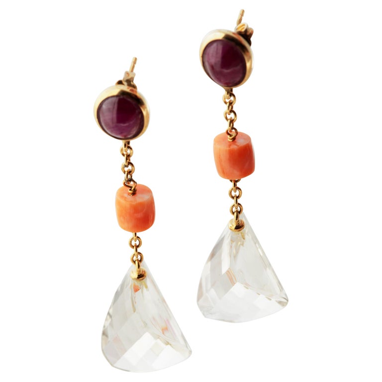 Ruby Citrine Quartz Pink Coral 18 Karat Yellow Gold Pendulum Dangle ...