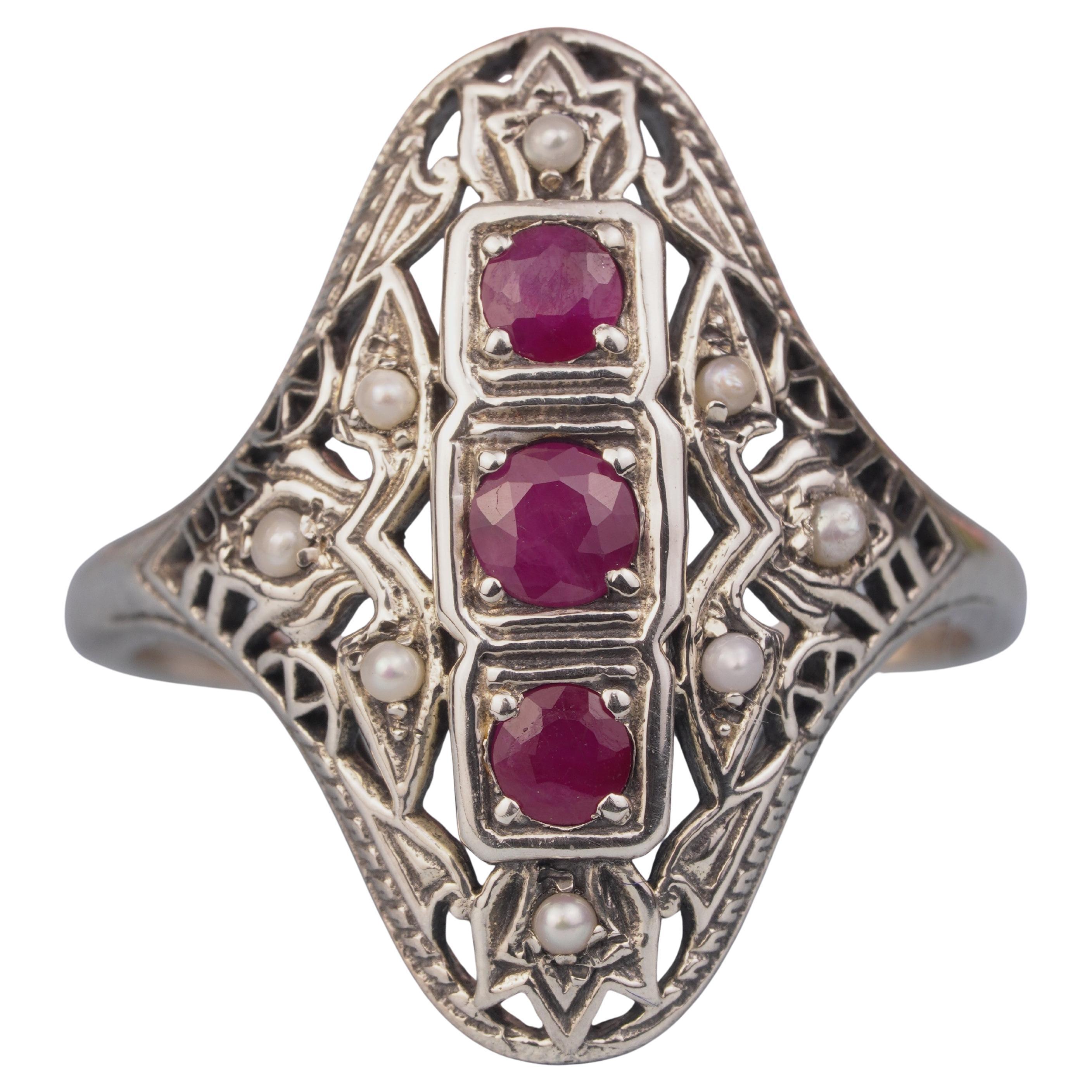 Silver925 Natural Ruby Pearl Vintage Filigree Ring For Sale at 1stDibs