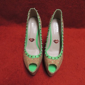 Redkiss Green Ruby Pumps Woman's Size 8 1/2 Open Toe, Cork Cut Out With ...