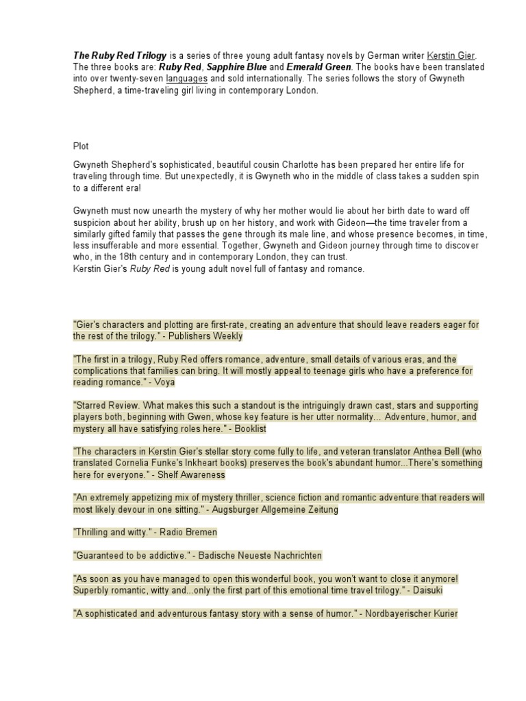 The Ruby Red Trilogy | PDF | Courtship | Books
