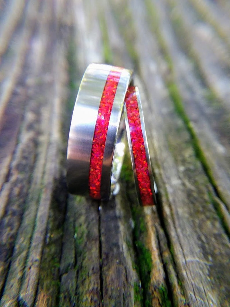 Titanium and Red Fire Opal Wedding Band Set Ruby Red Fire - Etsy