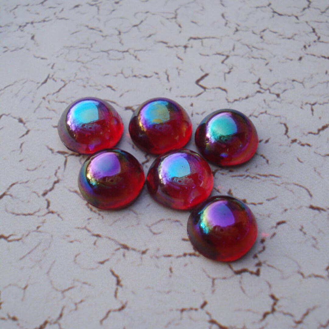 11mm Ruby Red AB Fire Polish Vintage Un-foiled Slightly Rounded Flat ...