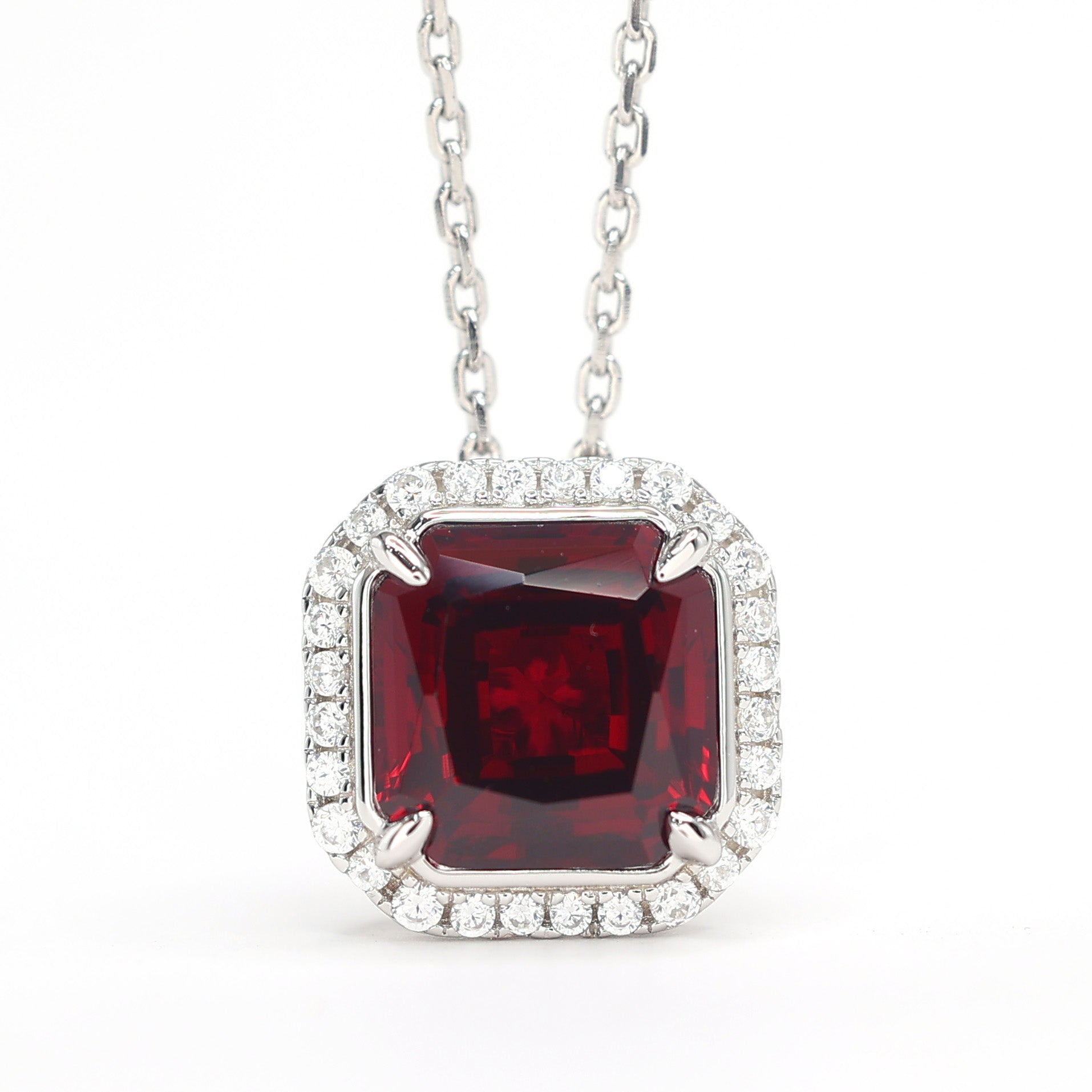 Micro-setting Ruby color square shape Lab created stones 4 prong neckl ...
