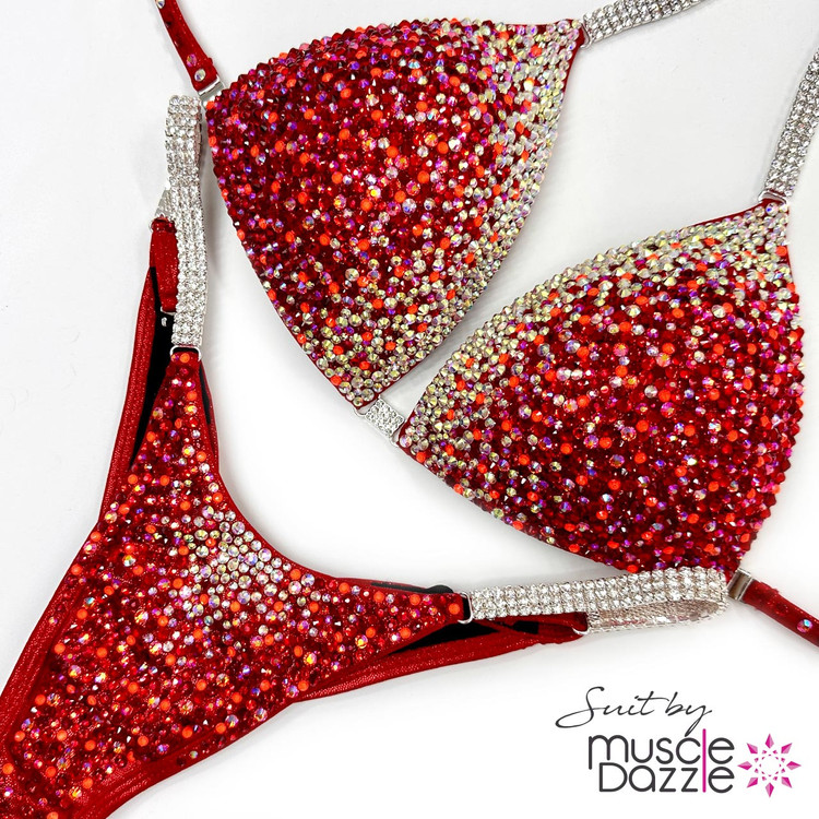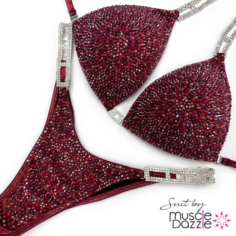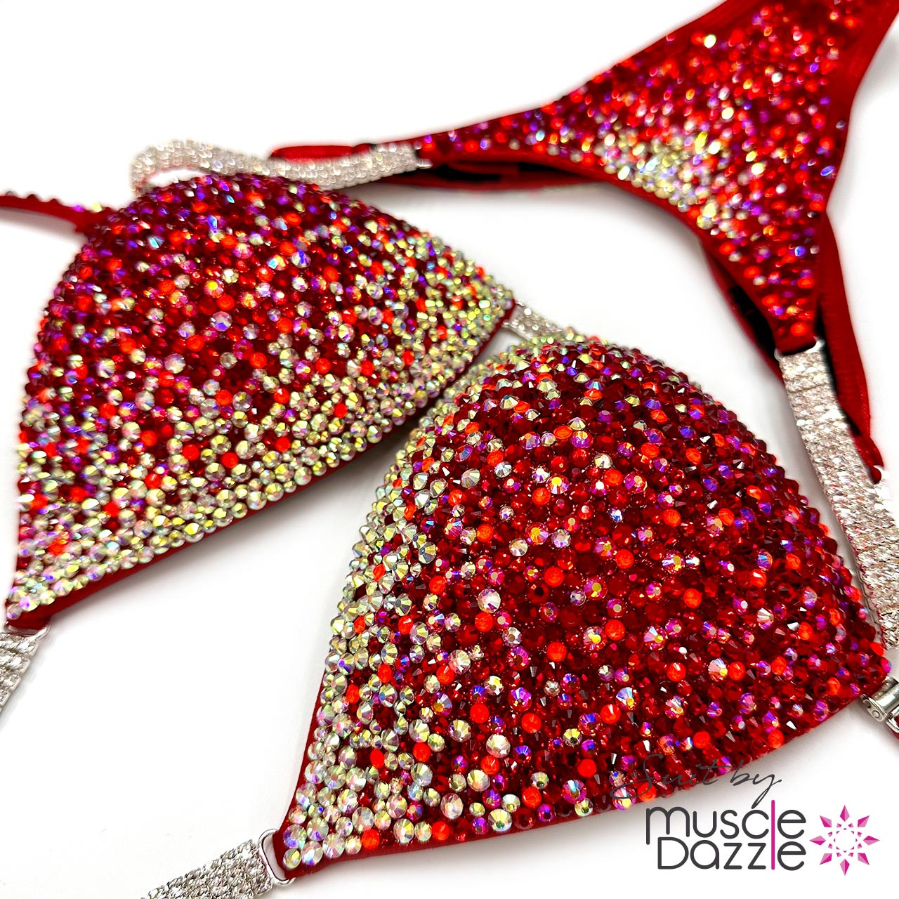 Hand-Crystalled Ruby Red Competition Bikini | Custom Made