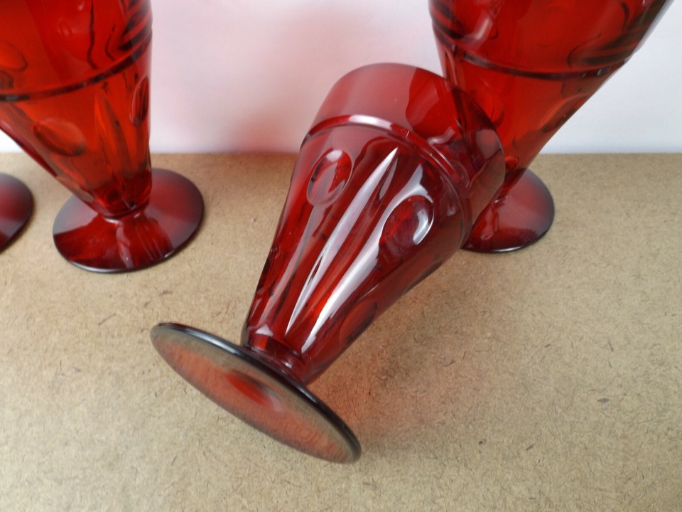 4 Duncan & Miller Punties Plaza #21 Ruby Red Tumblers Depression Glass ...