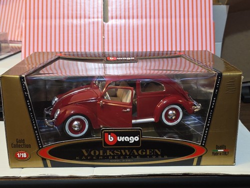 2000 Burago 1/18 Scale Diecast 3381 Volkswagen Kafer Beetle 1955 Ruby ...