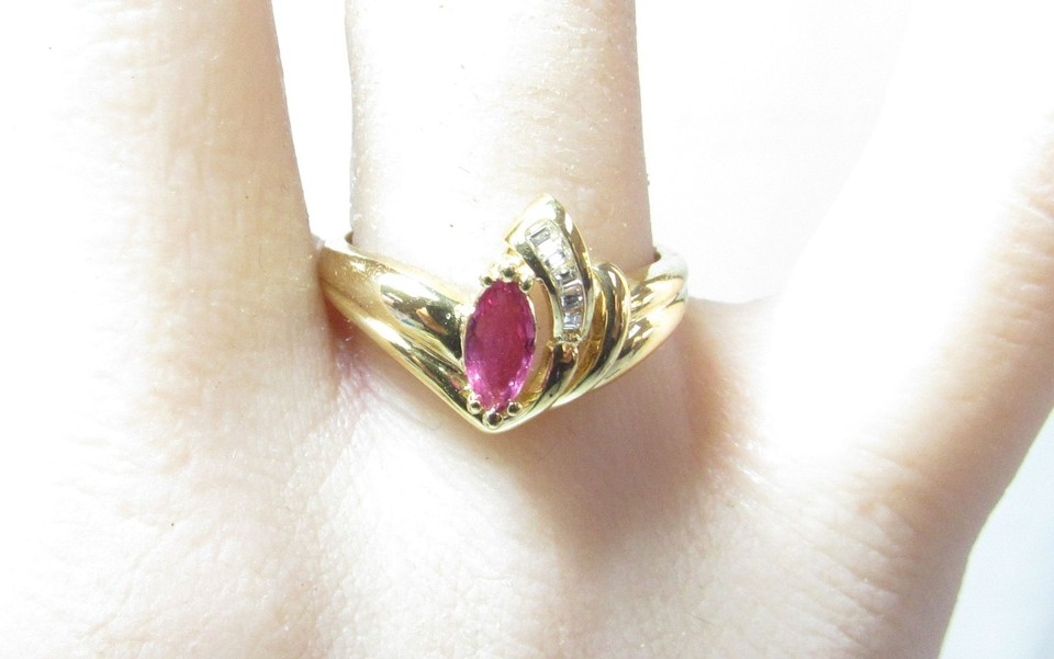 SOLID 14K GOLD RED NATURAL RUBY RING WITH FRENCH CUT DIAMONDS | eBay