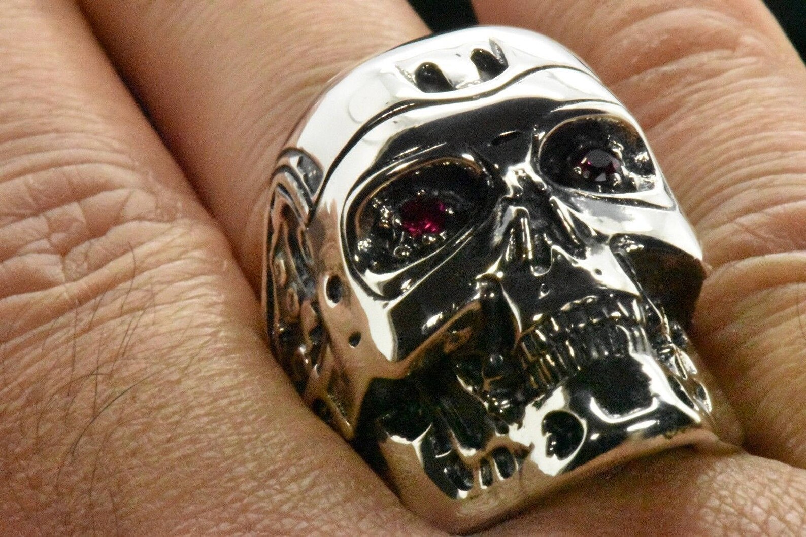 Skull Rings for men Terminator Mask Soldier Rings Vampire Ruby Eyes ...