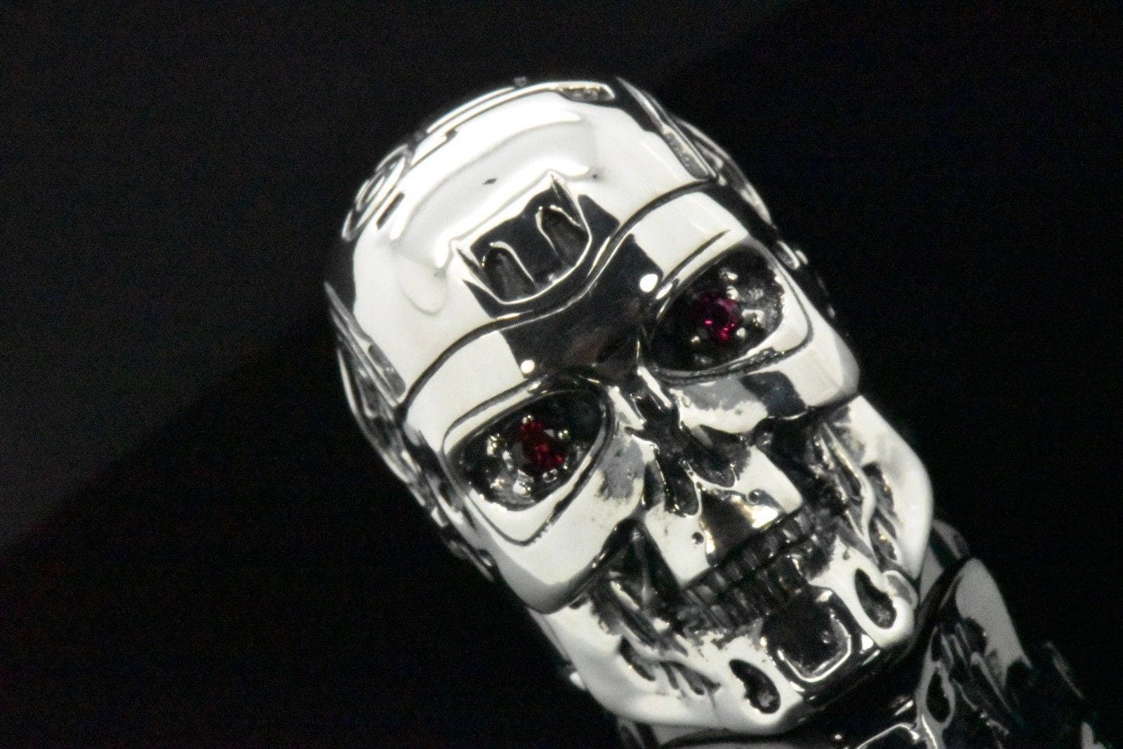 Handmade 925 Sterling Silver Red Ruby Cyborg Gothic Robot Biker Mens ...