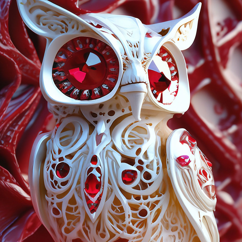 "Biotechnological terminator, robot, owl, ruby, modern, ivory carving ...