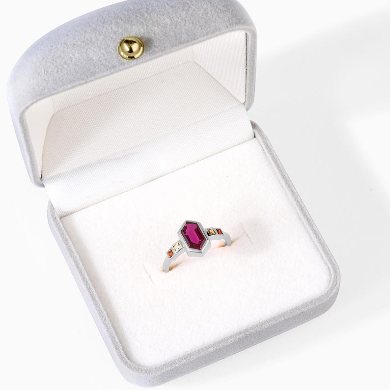 Hexagon Ruby Geometric 14K Solid Gold Ring, Art Deco Engagement ...