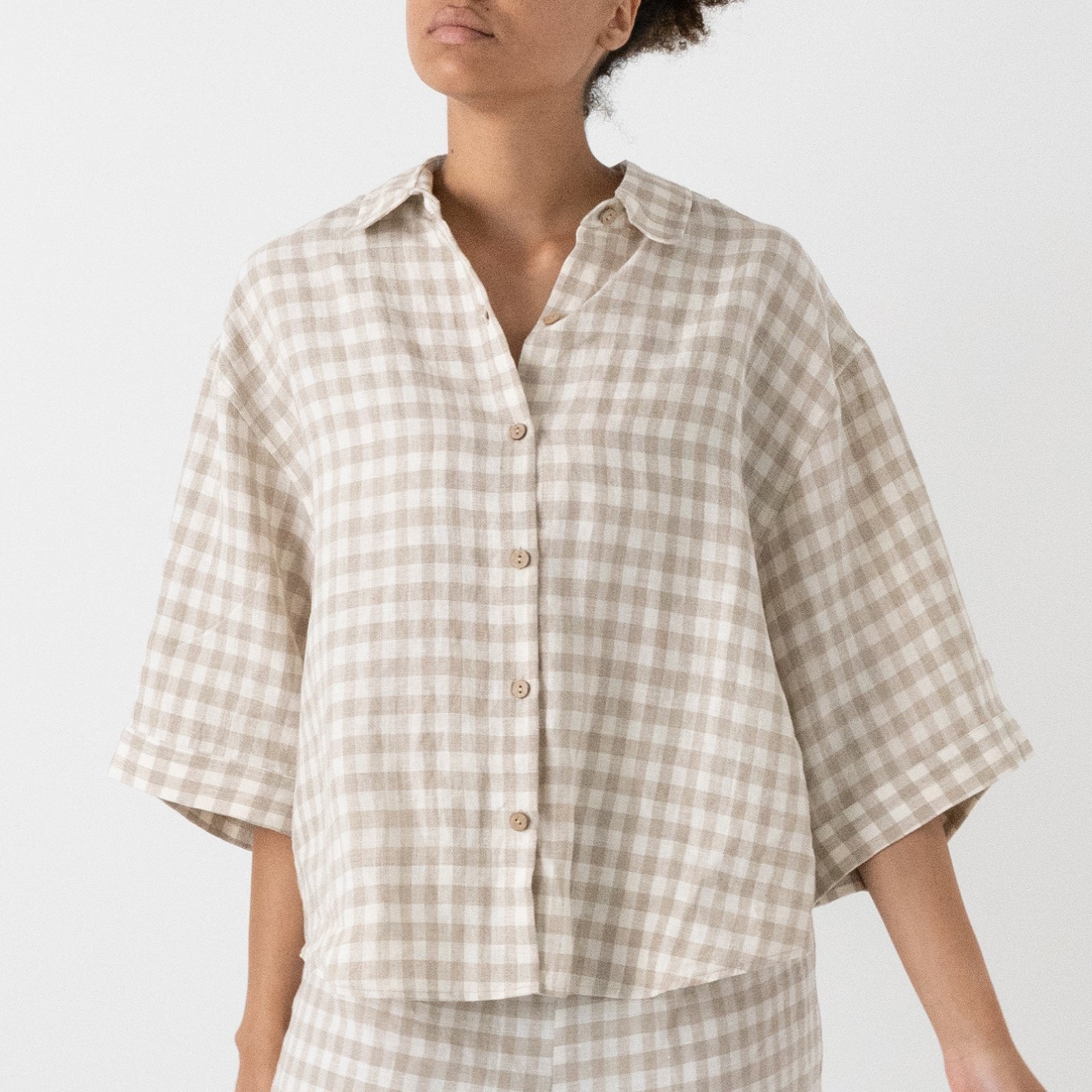 French Flax Linen Ruby Shirt in Beige Gingham – I Love Linen