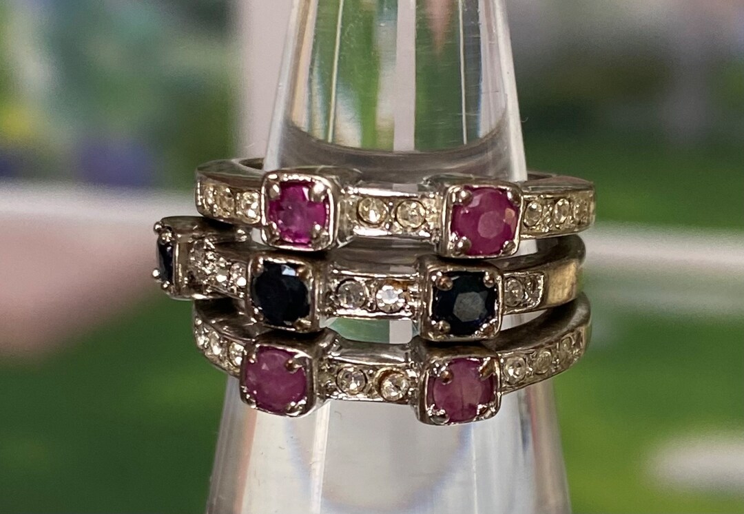 Ruby & Sapphire Stackable Rings Set - Size 6, Rhodium Plated With Cubic ...