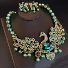 vintage steed animal glass ruby earrings necklace high-end set ...