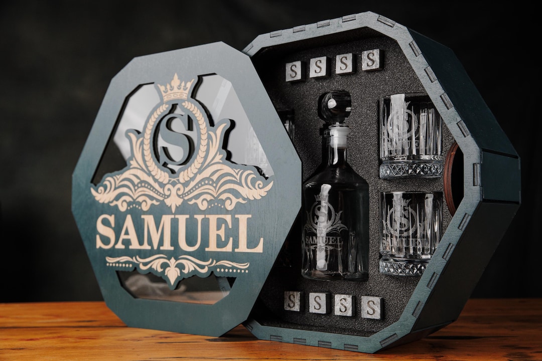 Smaragd Whisky Dekanter Set Gravierte Custom Gläser Steine Holzkiste ...