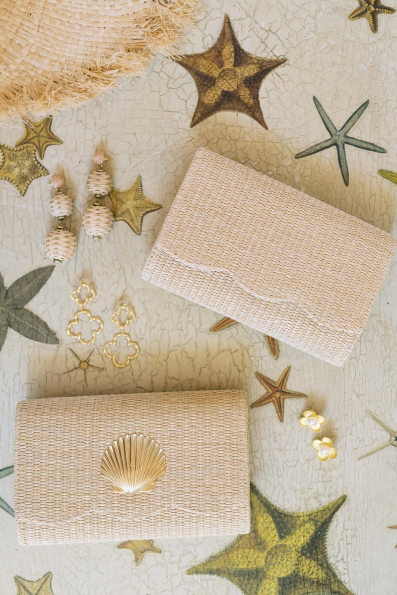 Ruby Scalloped Straw Clutch Gold - Charm Options Available – The Well ...