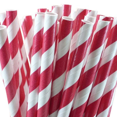 20 Pack Ruby Red Stripes Paper Straws | The Base Warehouse