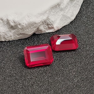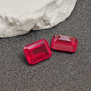 Rectangle Shape Lab Grown Ruby Emerald cut Stone Artificial Ruby Stone ...