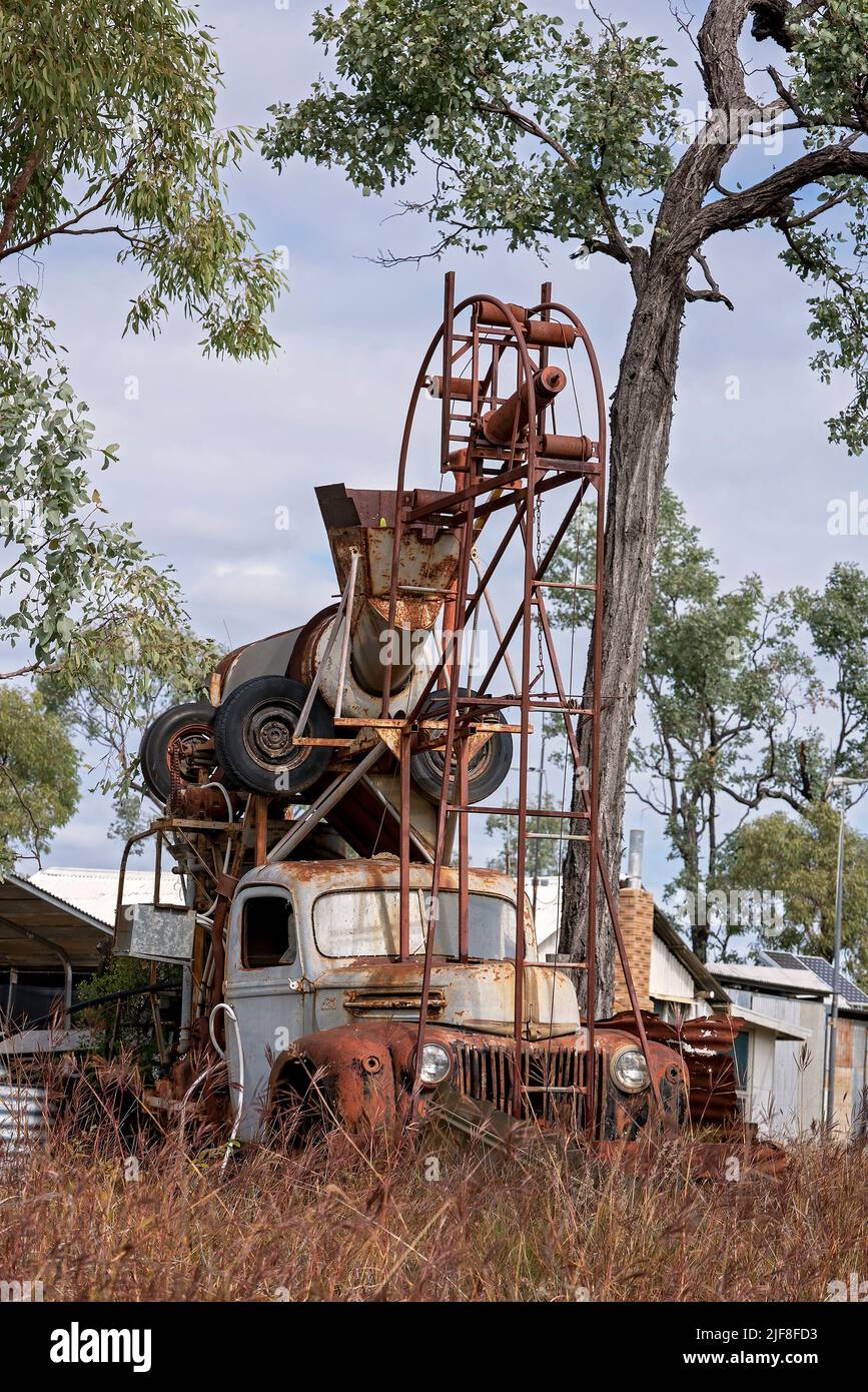 Old rusting underground sapphire mining equipment at Rubyvale gemfields ...
