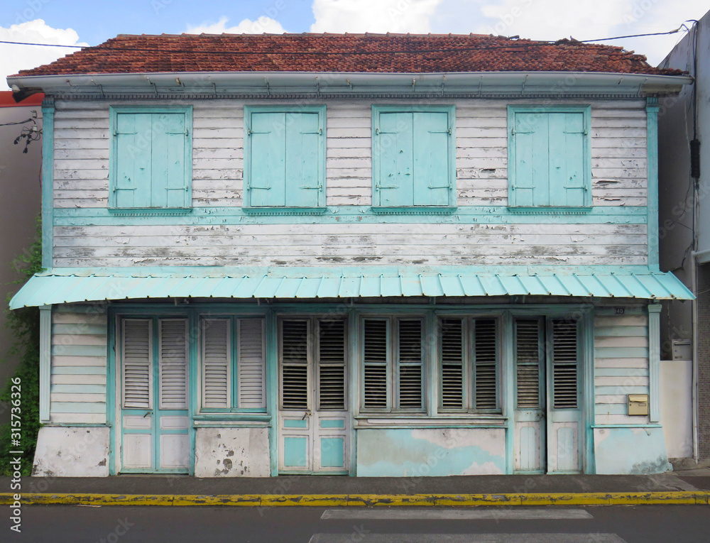 Typical wooden and rusted house in Martinique, French West Indies ...