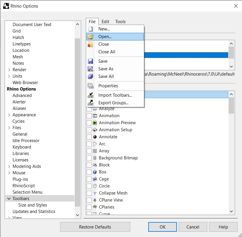 R8 Toolbars: Relation between .rhc and .rui files? - Rhino Developer ...