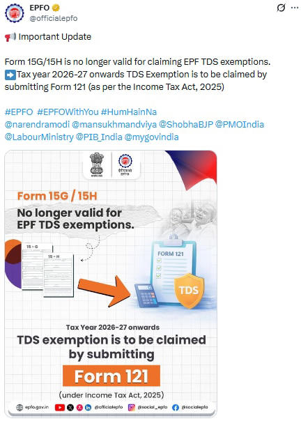 EPFO details Form 121 rules replacing 15G, 15H from April