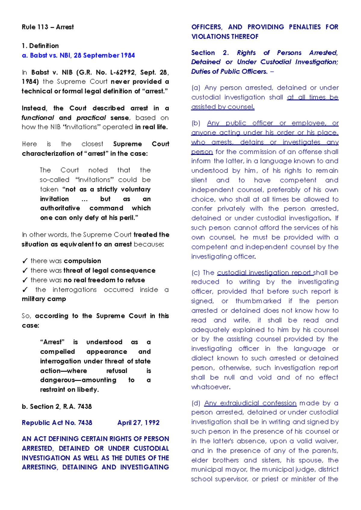 Rule 113: Understanding Arrests and Their Legal Implications in ...