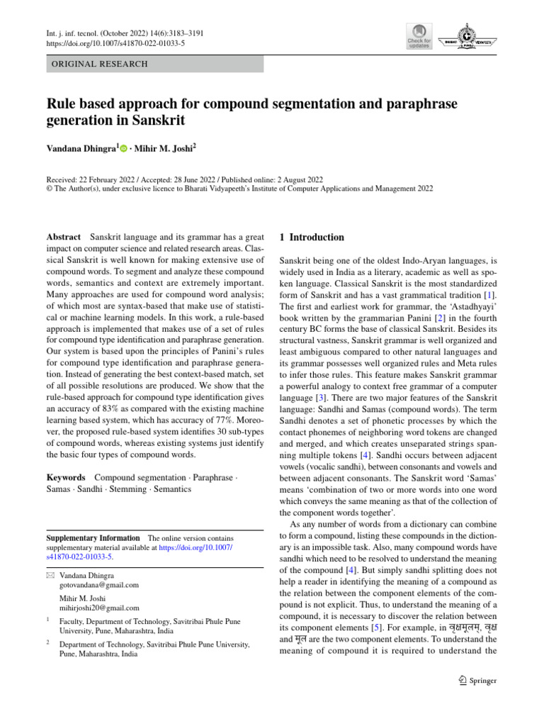 Rule Based Approach For Compound Segmentation and Paraphrase | PDF ...