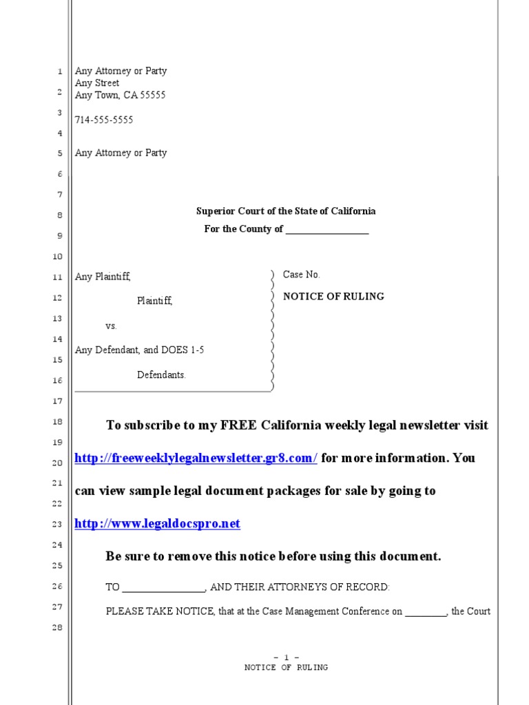 Sample Notice of Ruling For California | PDF | Mail | United States ...