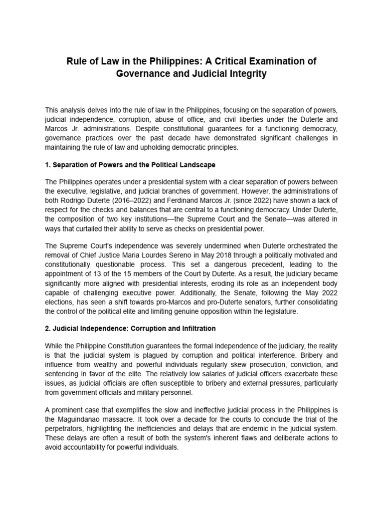 Rule of Law in The Philippines - A Critical Examination of Governance ...