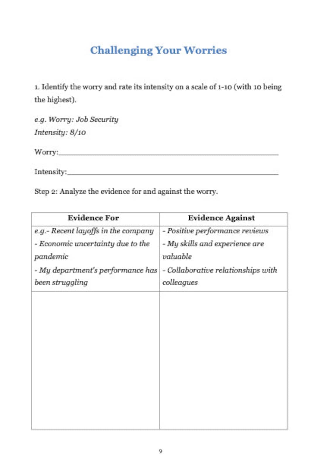 Free CBT Worksheets (Printable PDF Downloads) | ChoosingTherapy.com