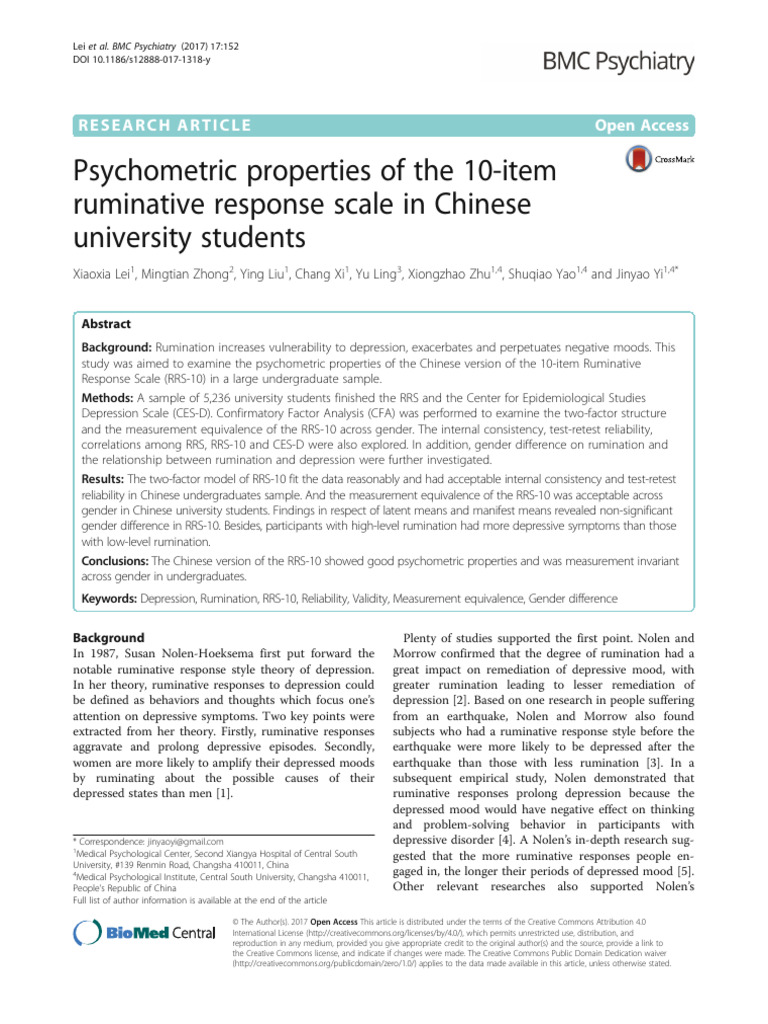 Ruminative Responses Scale Overview | PDF | Psychology | Psychological ...