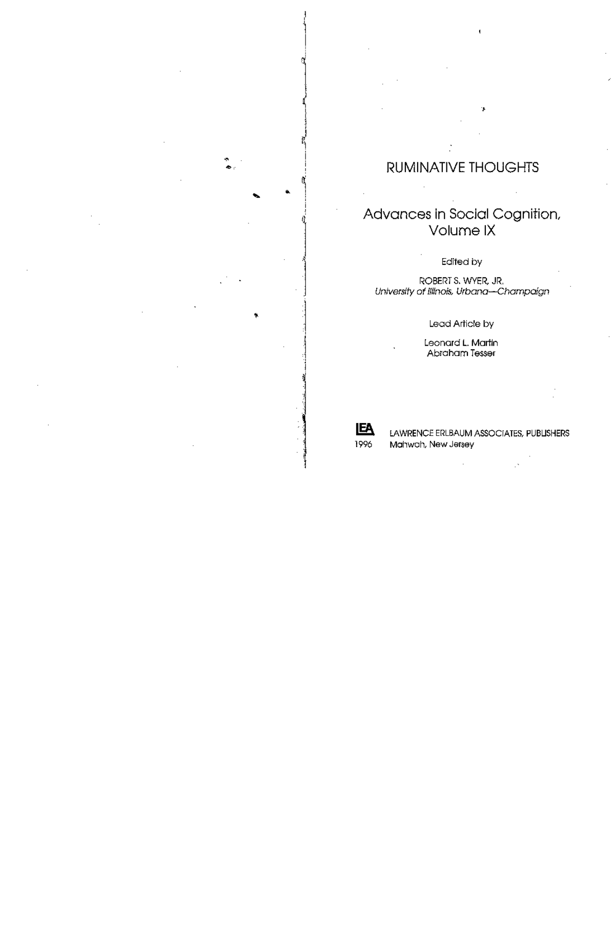 Ruminative Thoughts | Advances in Social Cognition, Volume IX | Robert