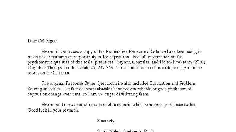 Ruminative Responses Scale Overview and Instructions - Studocu