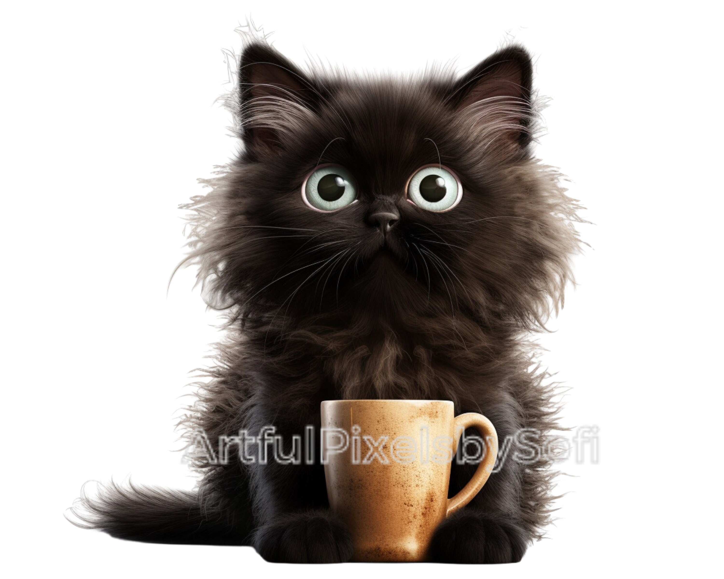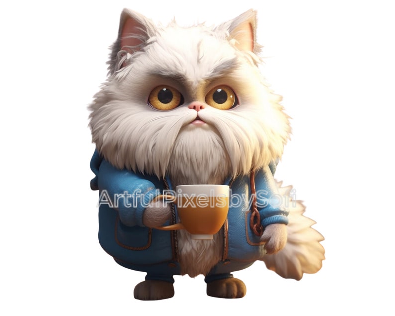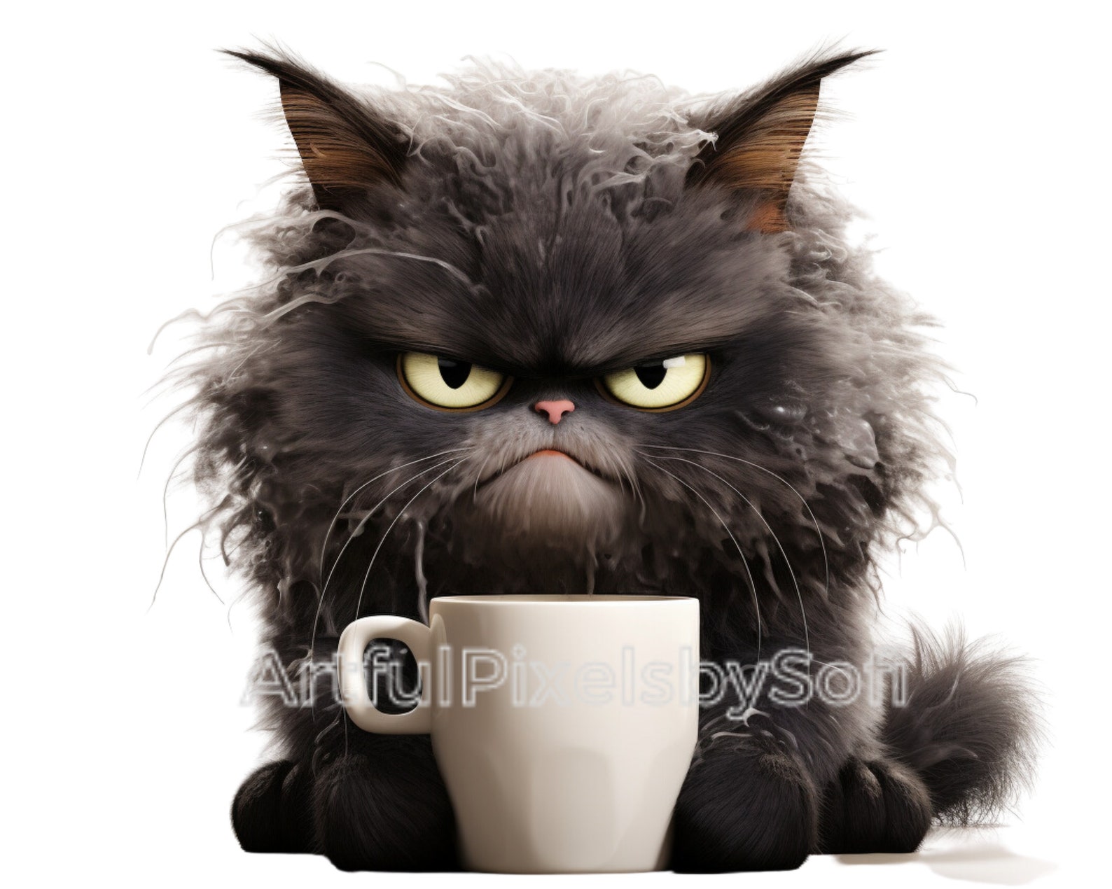 Fluffy Grumpy Coffe Cat Clipart, 10 Designs, 406 DPI, Printable,no ...