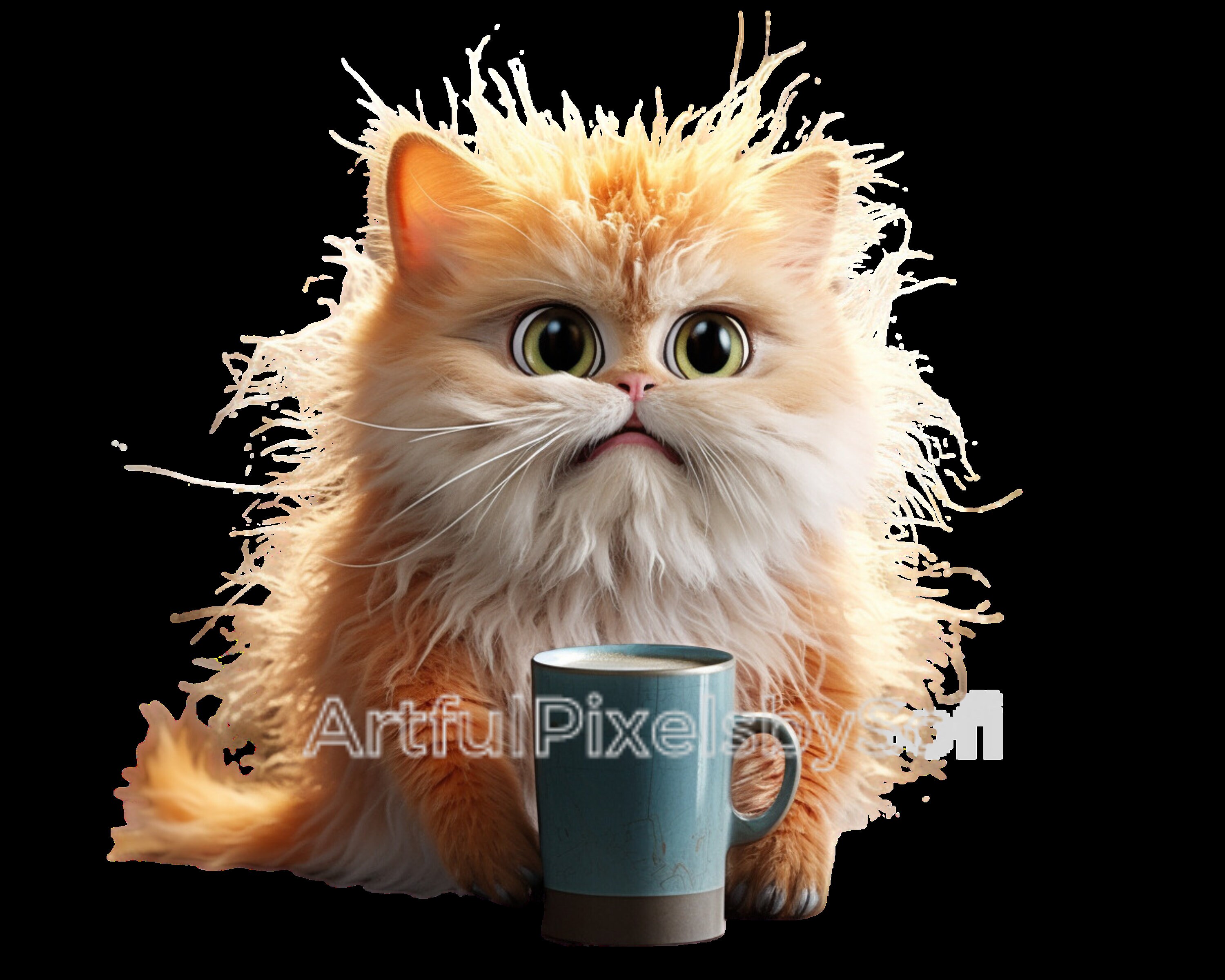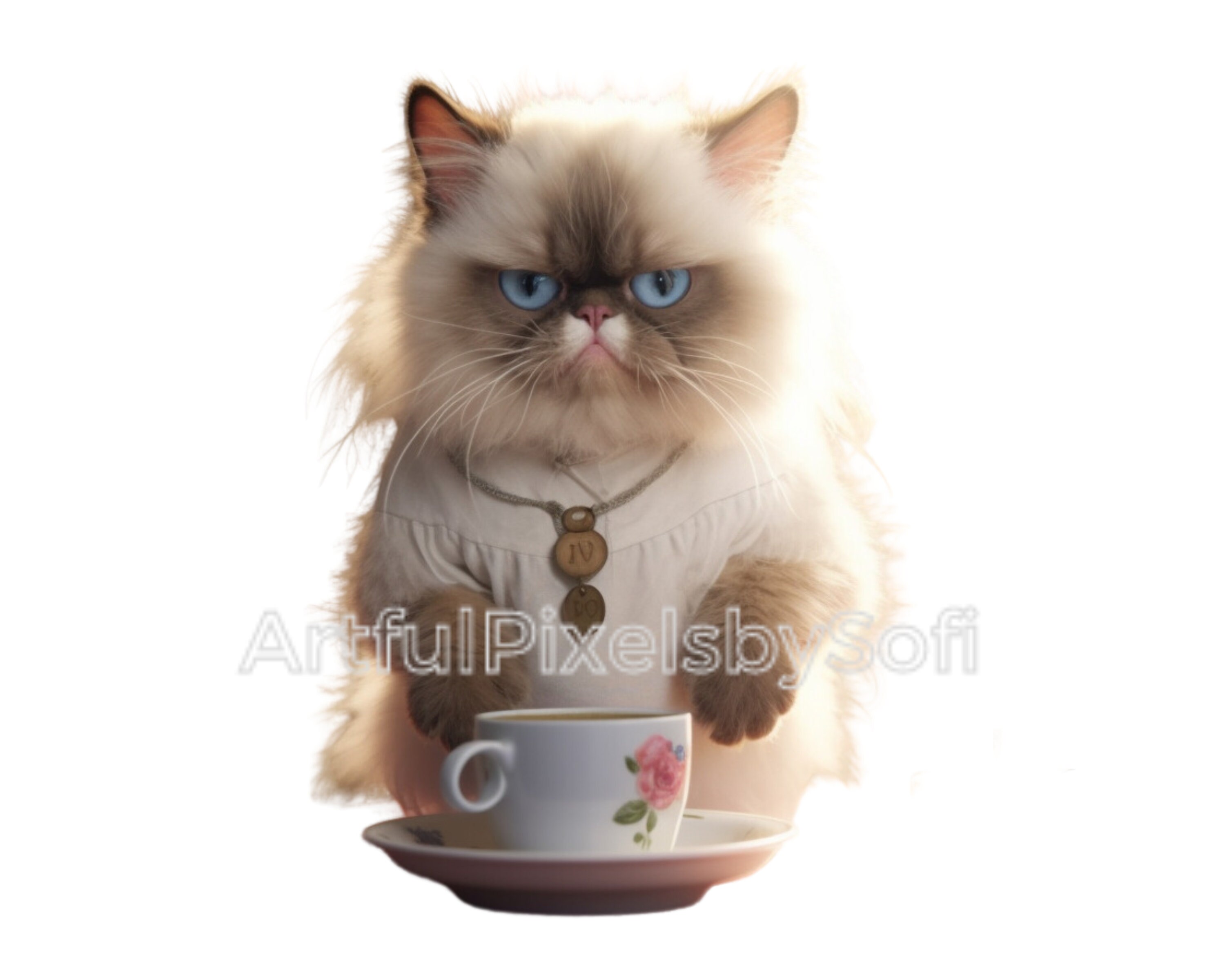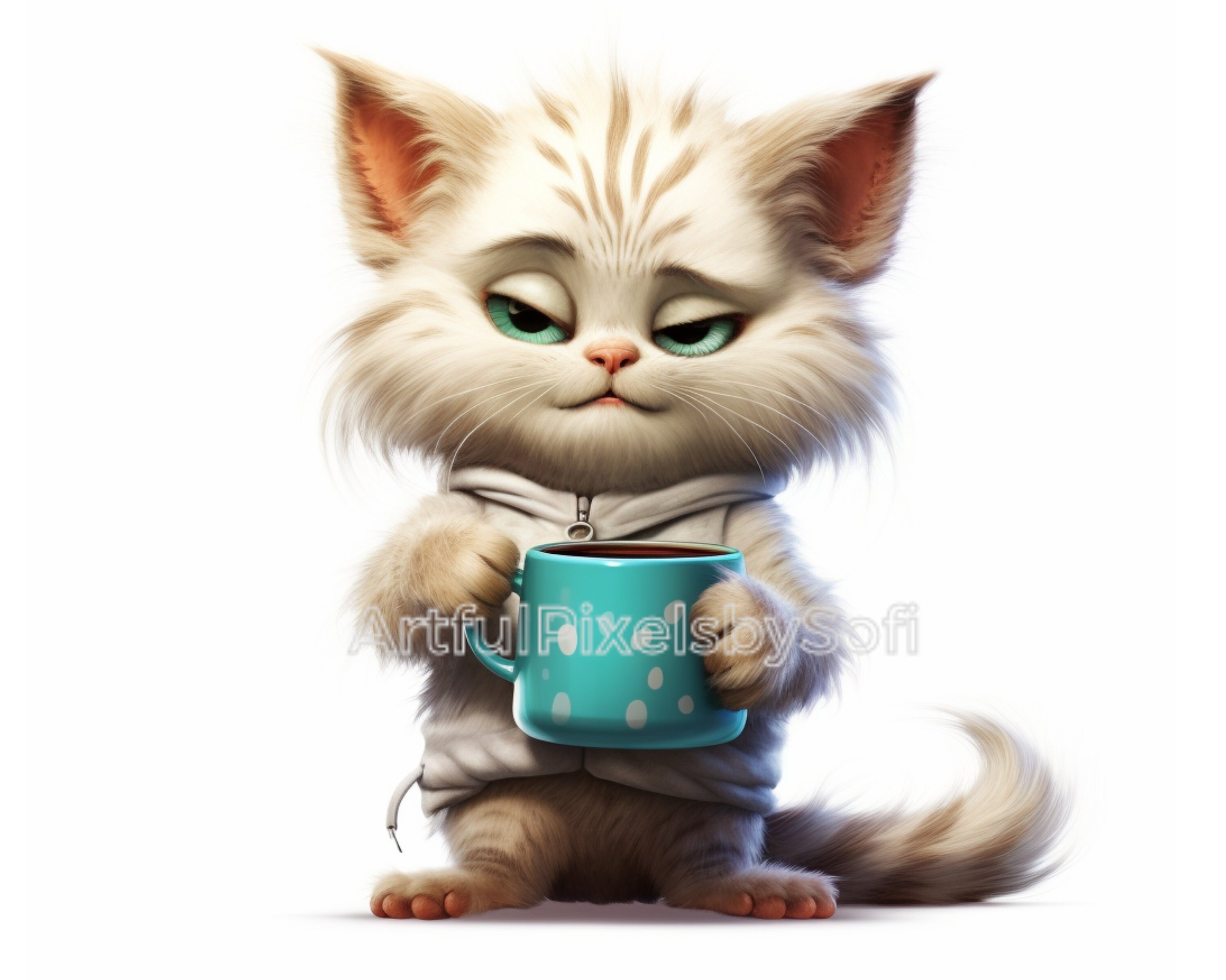 Fluffy Grumpy Coffe Cat Clipart, 10 Designs, 406 DPI, Printable,no ...