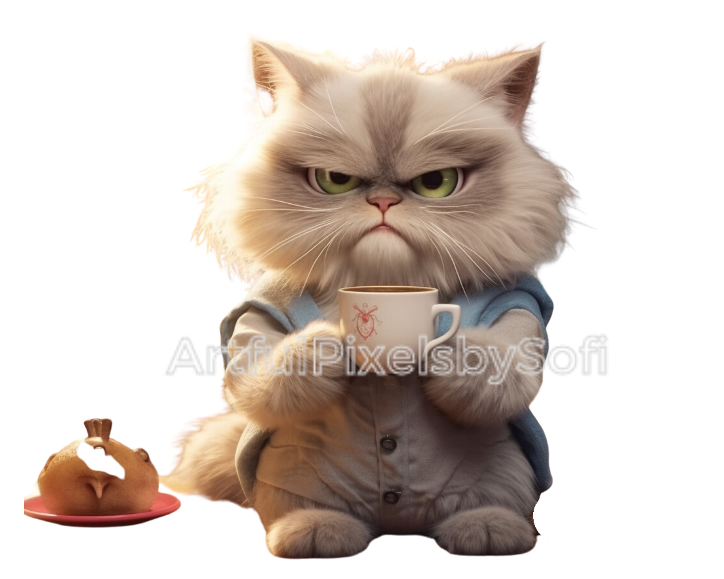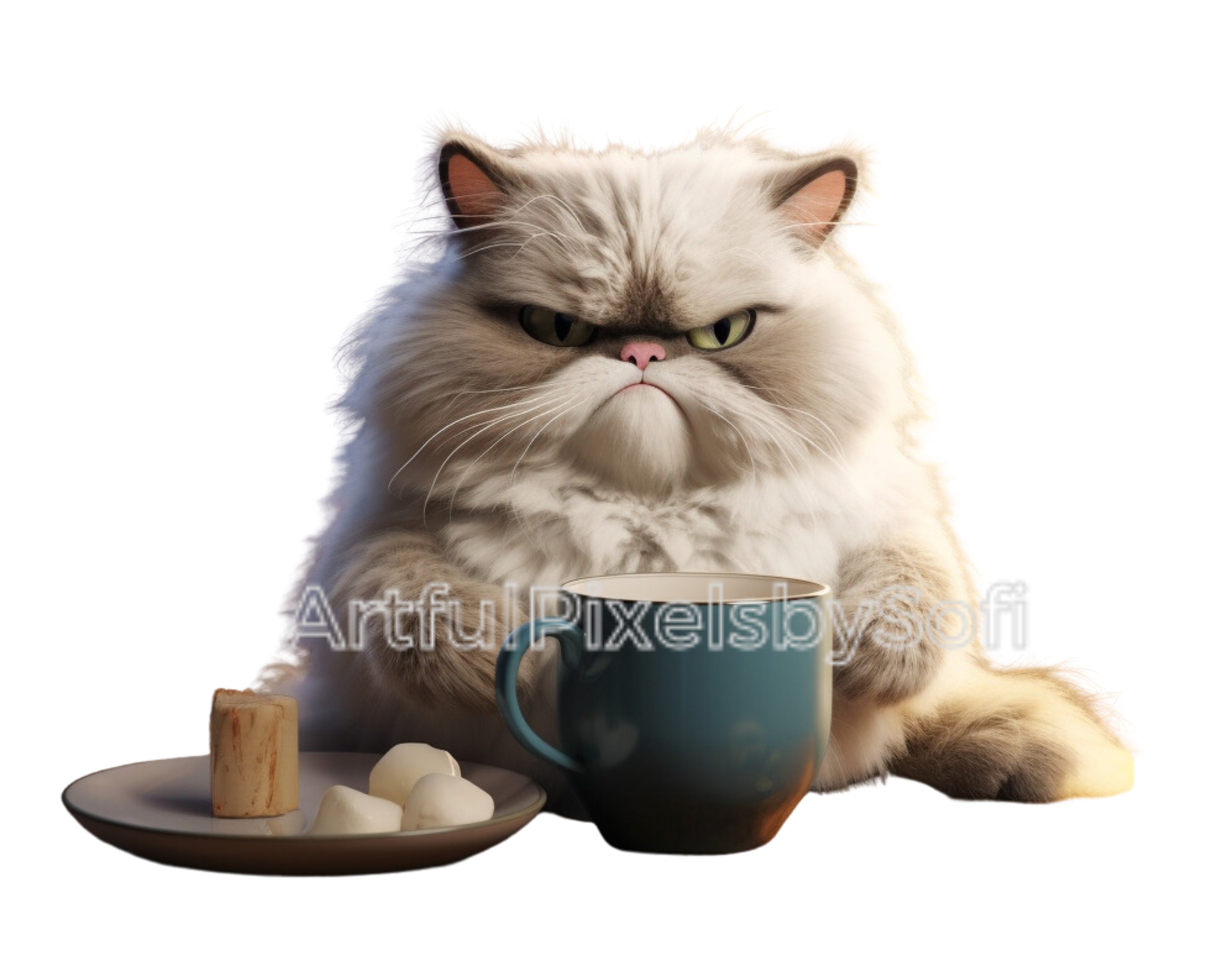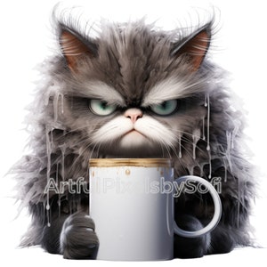 Grumpy Coffe Cat Clipart 10 Designs 406 DPI Printableno - Etsy
