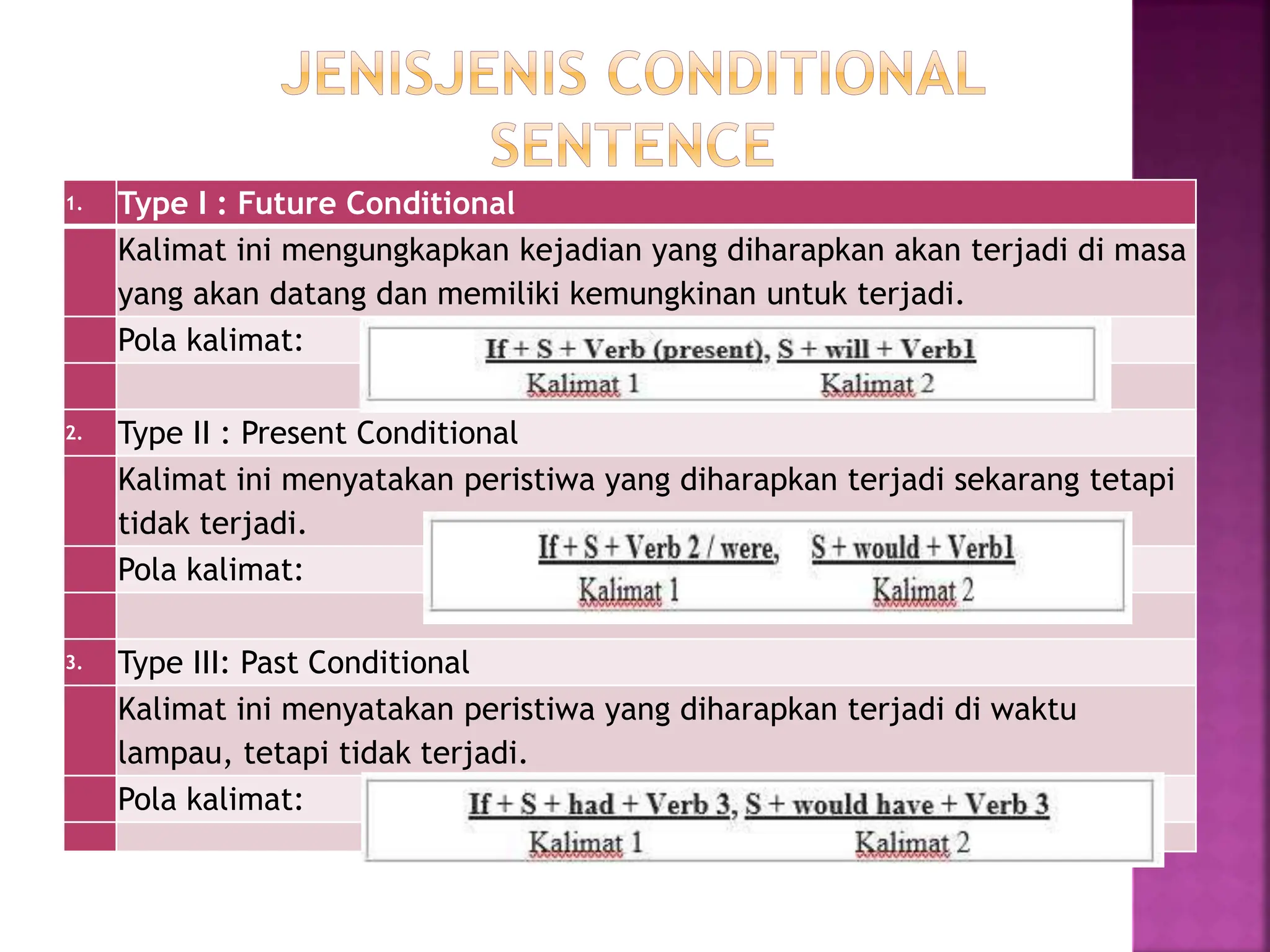 Conditional sentence: Rumus, penggunaan, dan aplikasi by Bahasa Inggris ...