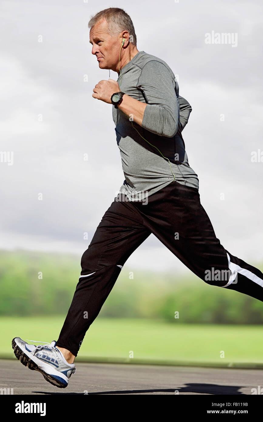 View of man running outdoors Stock Photo - Alamy