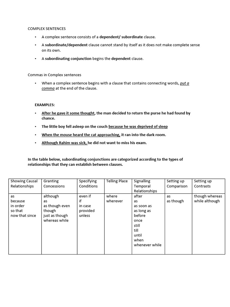 COMPLEX SENTENCES Running Notes | PDF