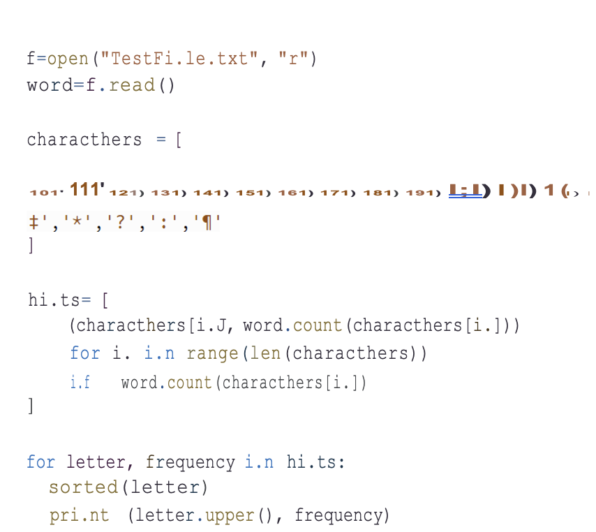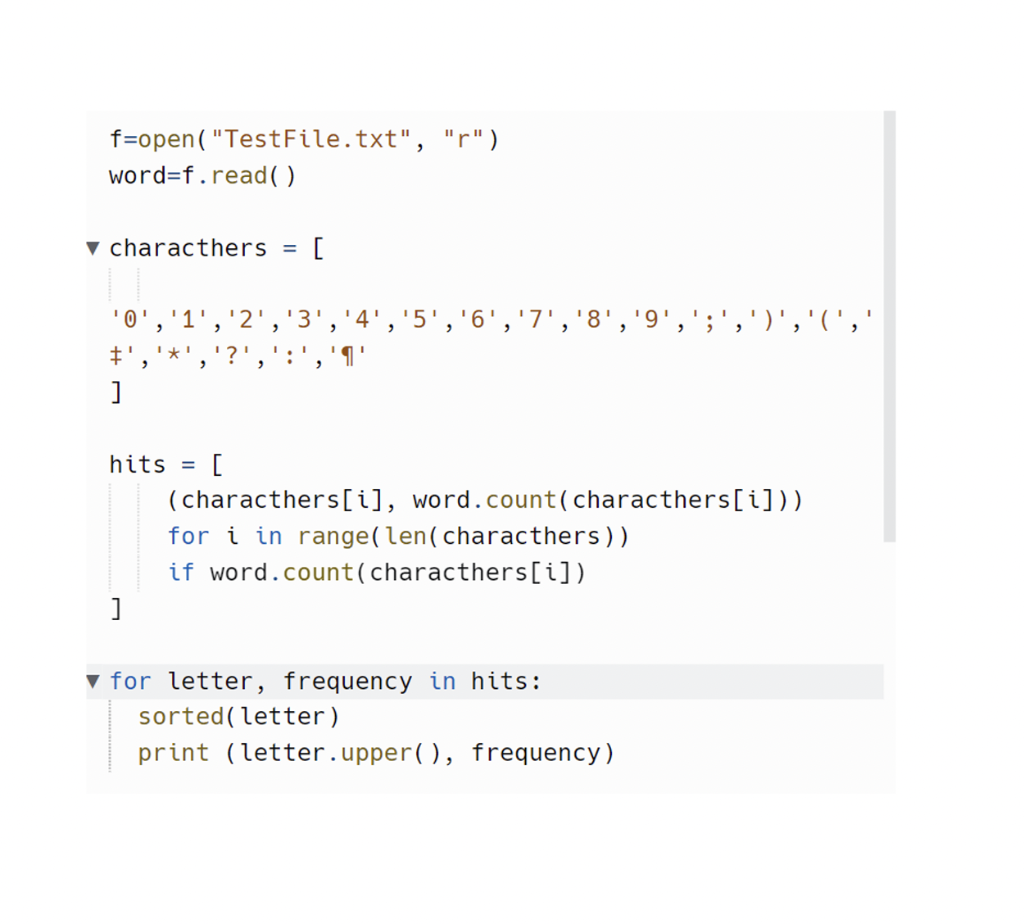Solved Run this code and print the frequency of the letters | Chegg.com