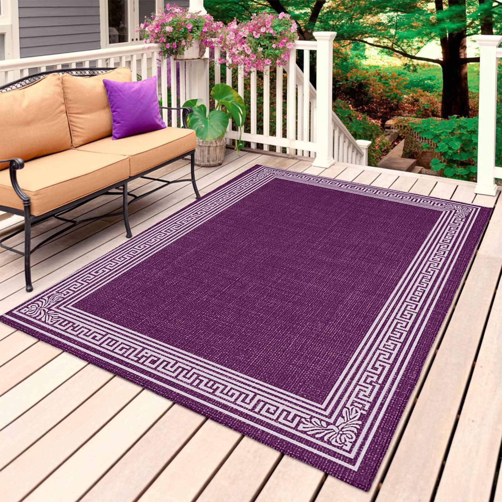 Dark Purple Retro Greek Key Outdoor Rug 6x9 Ft, Non Slip Washable Area ...