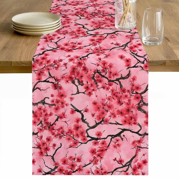 Chinese Flowers Table Runner - 70 Inch Long Spring Pink Peach Blossoms ...