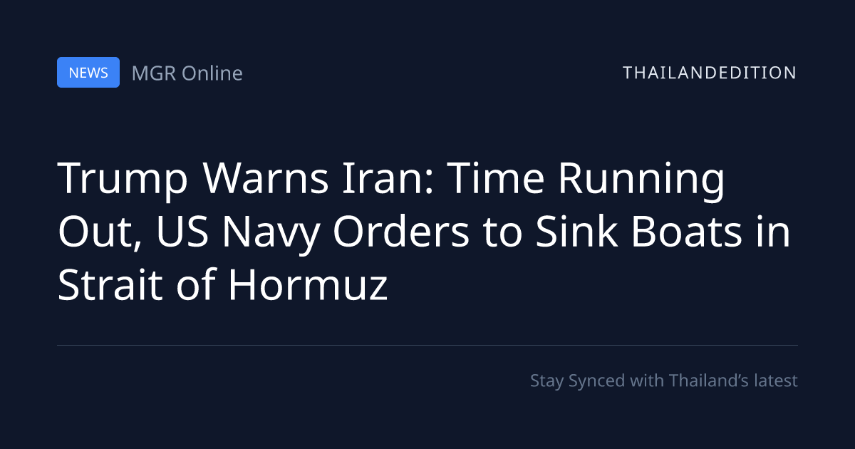 Trump Warns Iran: Time Running Out, US Navy Orders | thailandedition