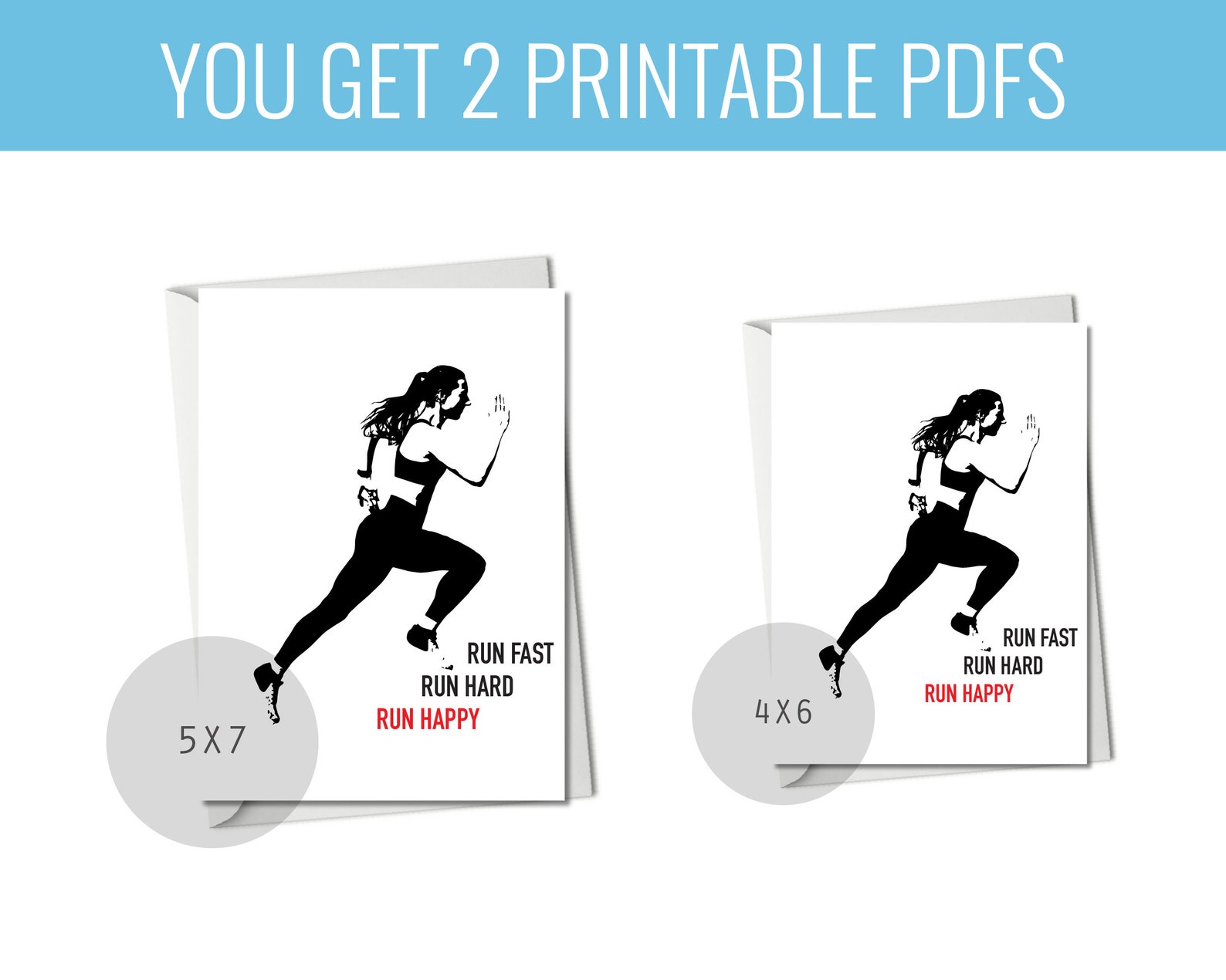 Printable Running Card for Female, Instant Download Girl Runner ...