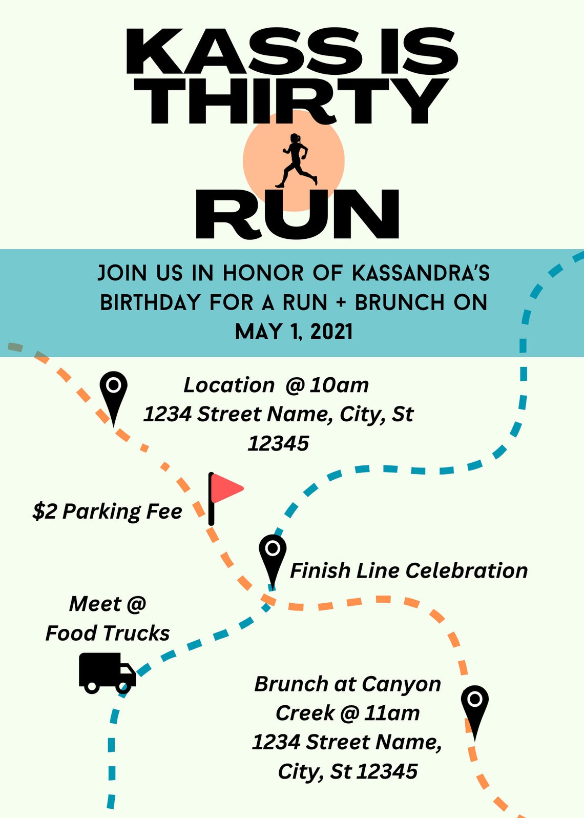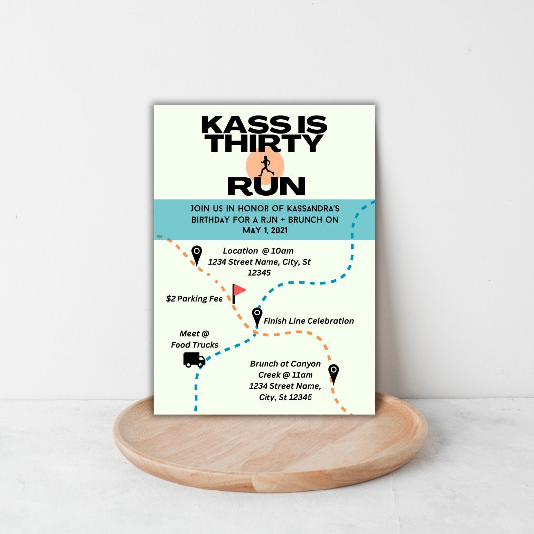 Running Birthday Invitation: Marathon Event, Editable Template (Digital ...